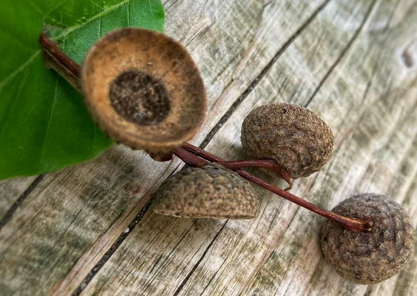 Buntes Laub raschelt am Boden, modriger Duft. Pilze, Zapfen und Beeren.